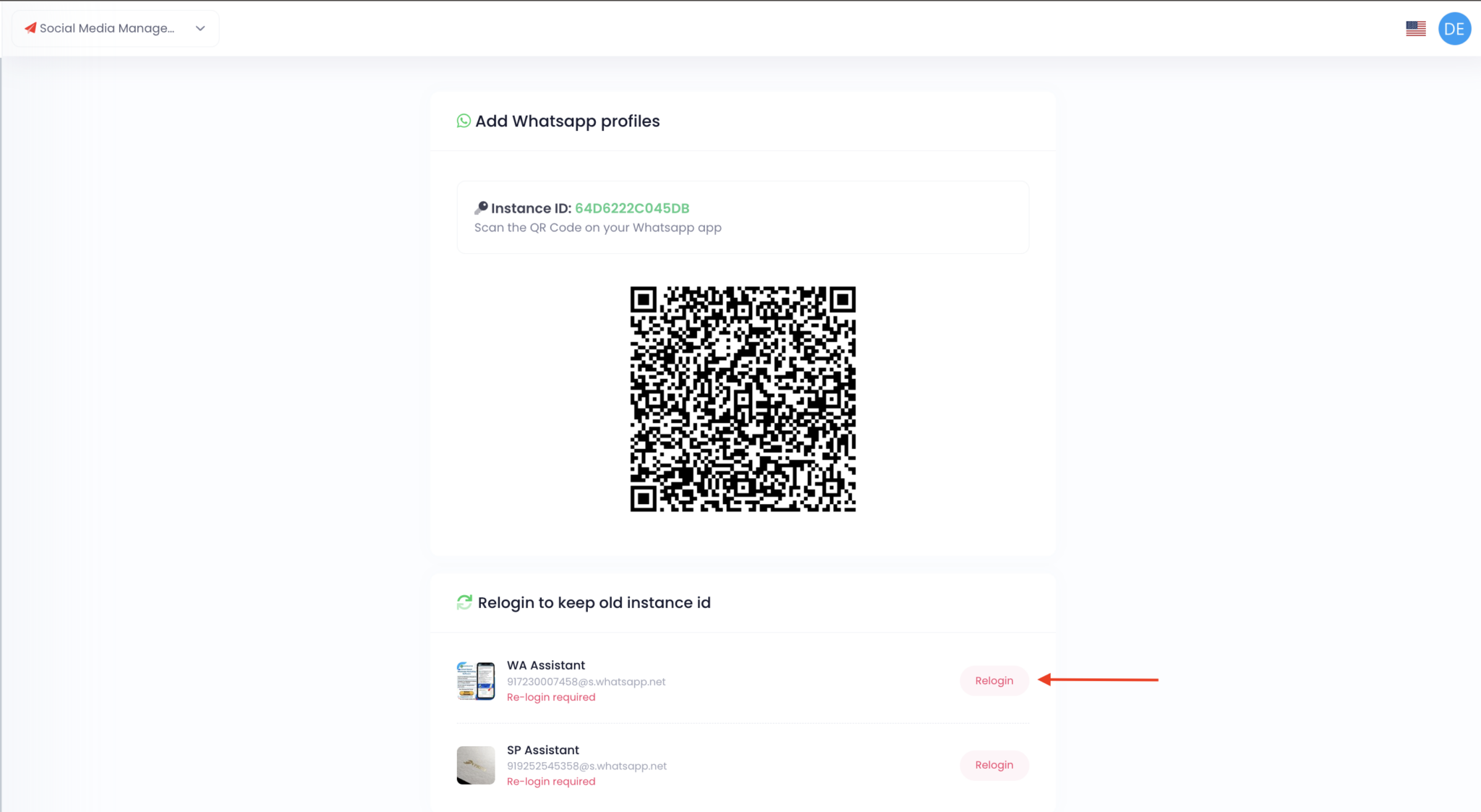 You will see your account under the QR Code. Click on the Relogin button next to it.